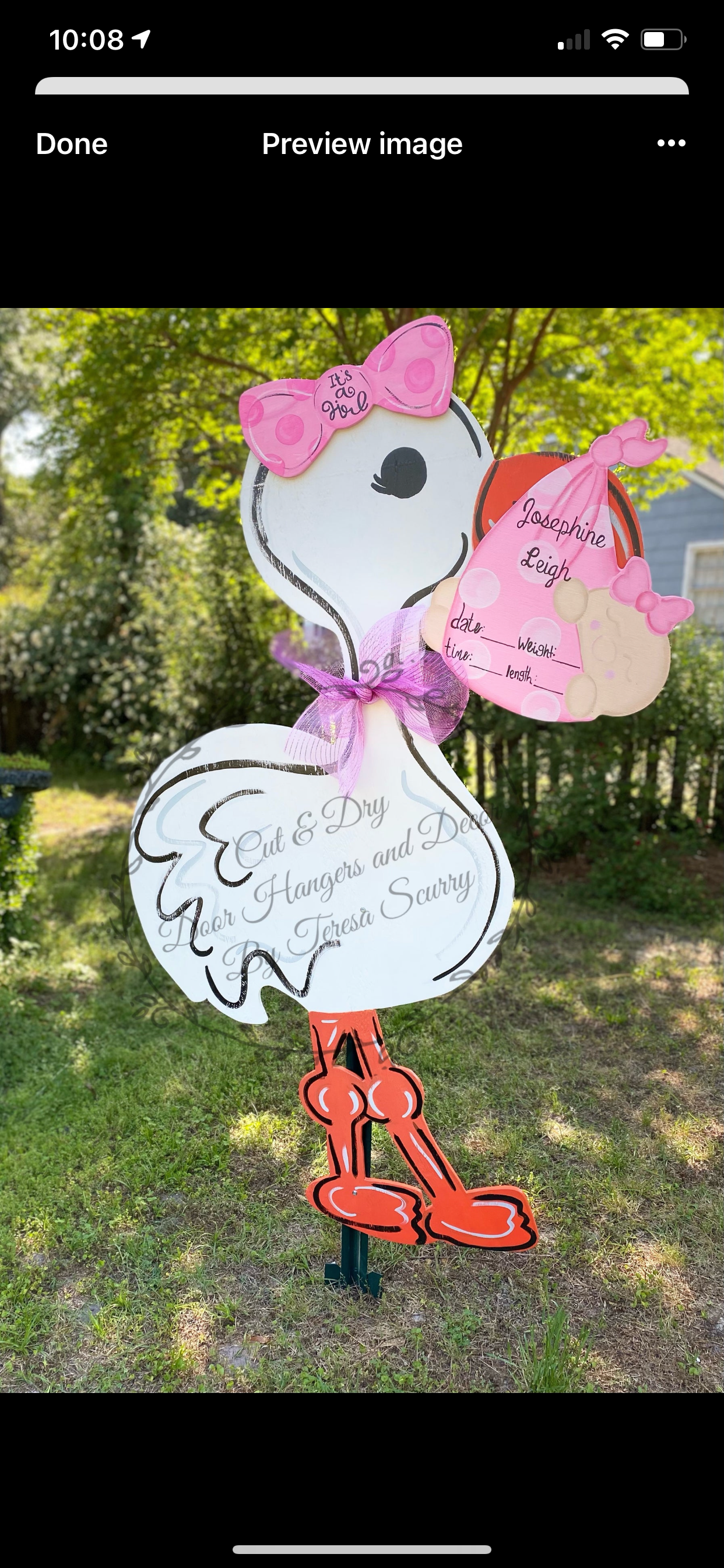 What better way to announce that your very special delivery has arrived? What does this package include you might ask? A one-week rental of my 5.5 ft stork and a keepsake baby (girl/boy) hanger that includes a personalized Stat attachment. Please message for availability!